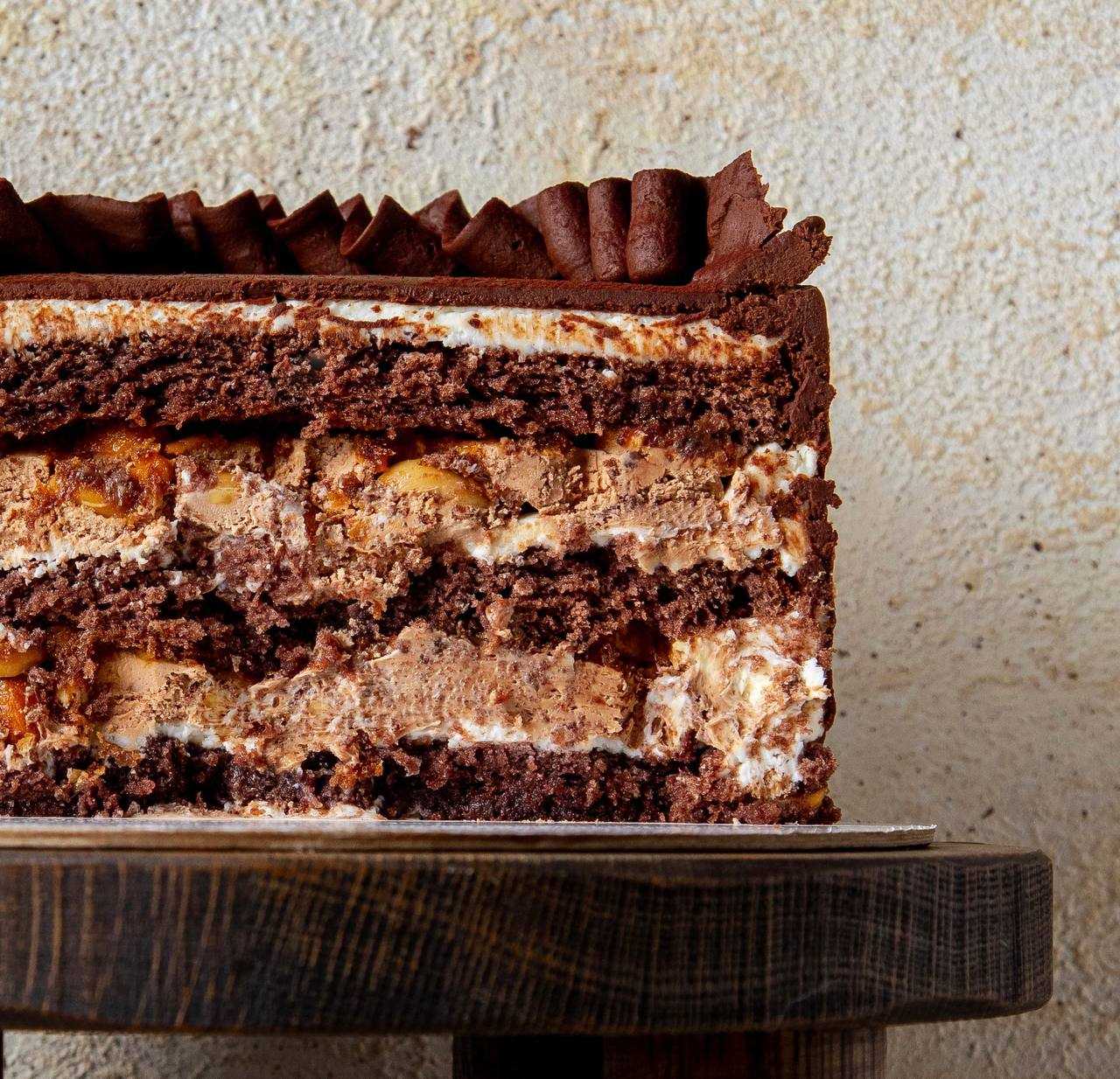 Насыщенные шоколадные коржи, шоколадно-ореховый крем с добавлением фундучной пасты и сливочный крем маскарпоне